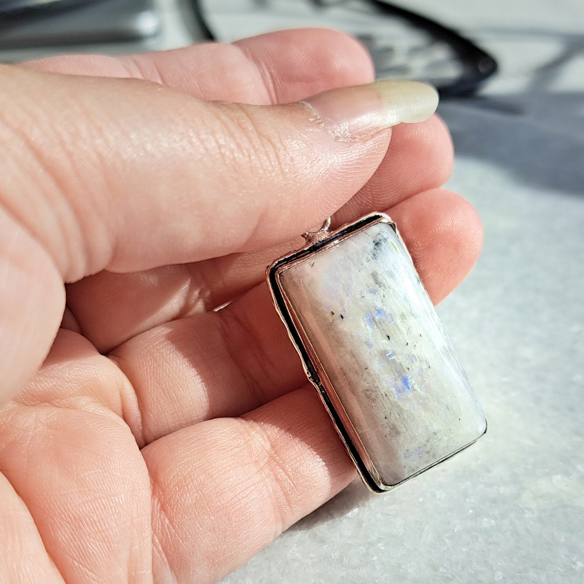 Disclaimer: Omdat deze maansteen hanger minimale flash bevat is deze afgeprijsd. Hij is alsnog heel erg mooi!
