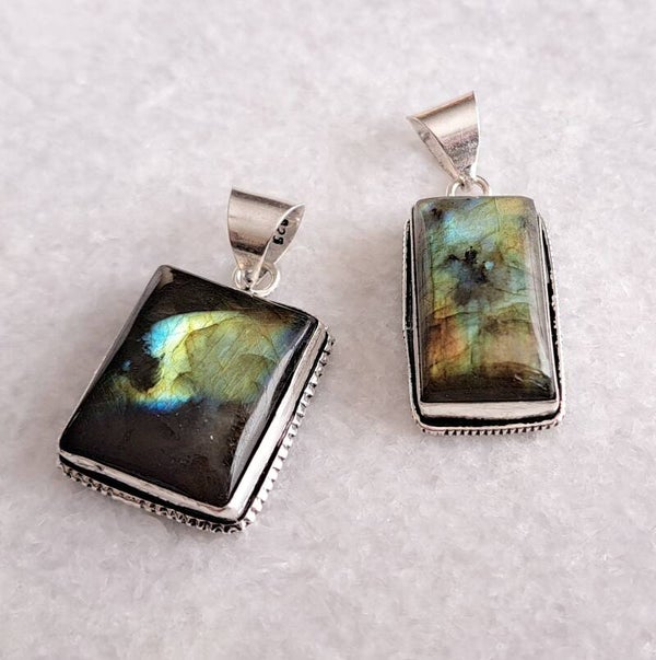 Labradoriet hanger zilver rechthoek