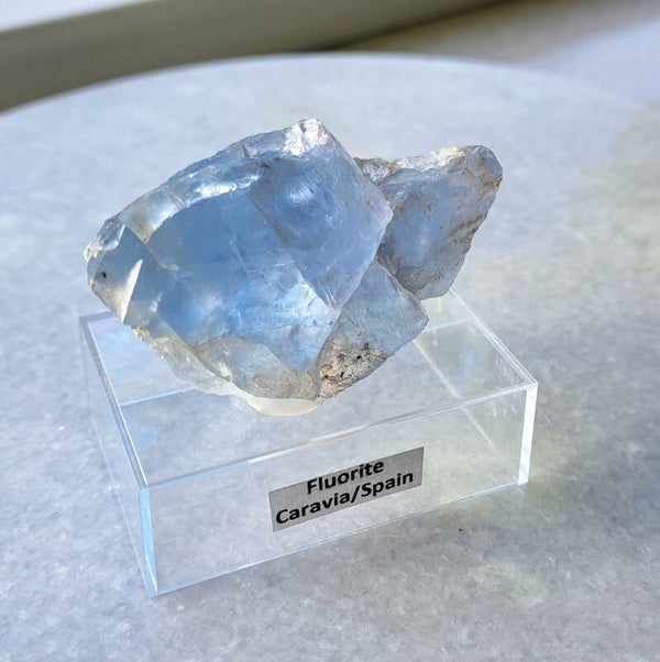 Fluoriet is een fijne steen voor energie en concentratie. Ideaal om op je studeer- of werkplek te leggen. Fluoriet werkt beschermend tegen straling (van computers etc). Ook heeft hij een goede invloed op botten, tanden en pijn in onder andere zenuwen. Deze ruwe fluoriet op sokkel bevat een prachtige regenboog!