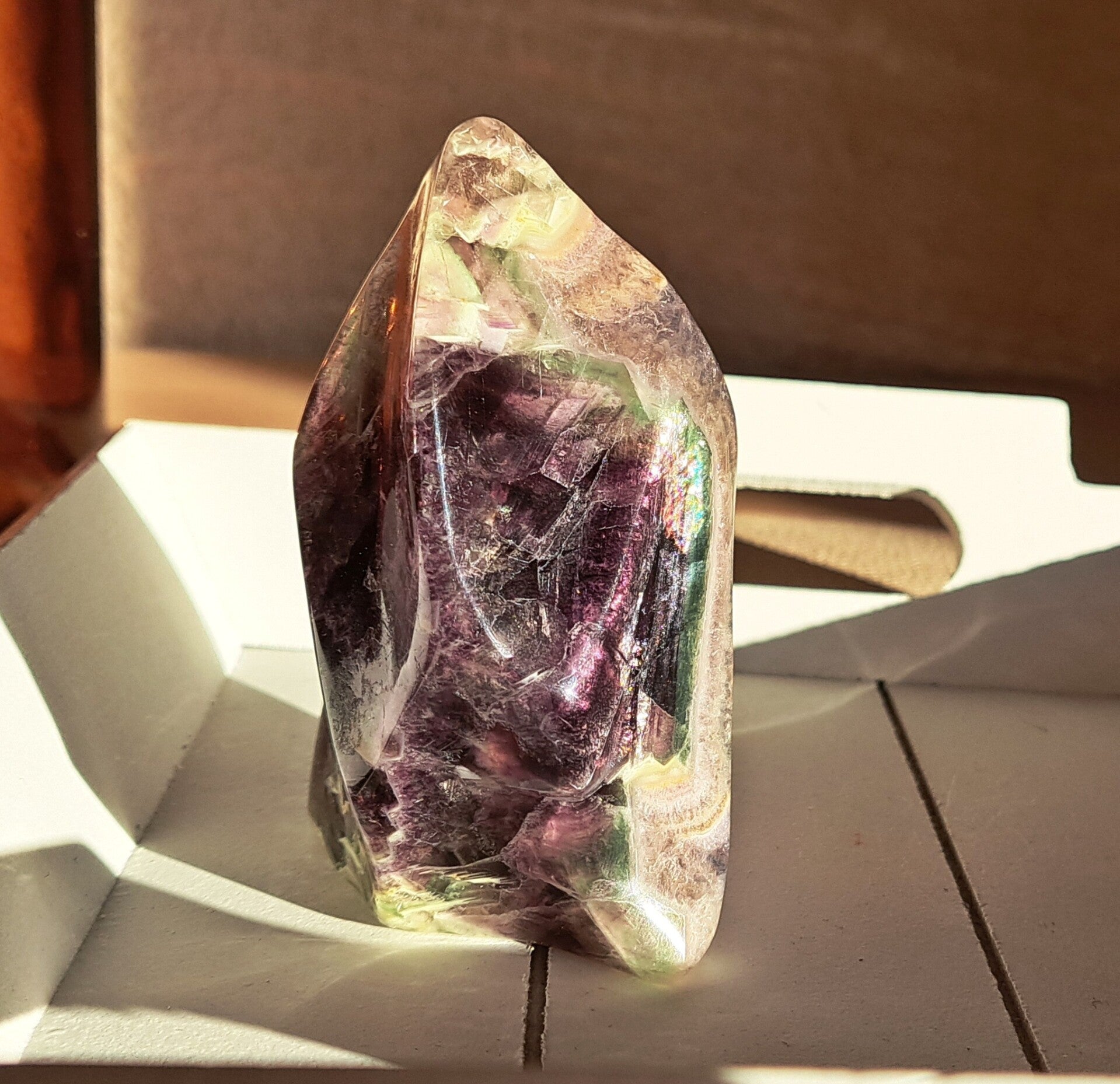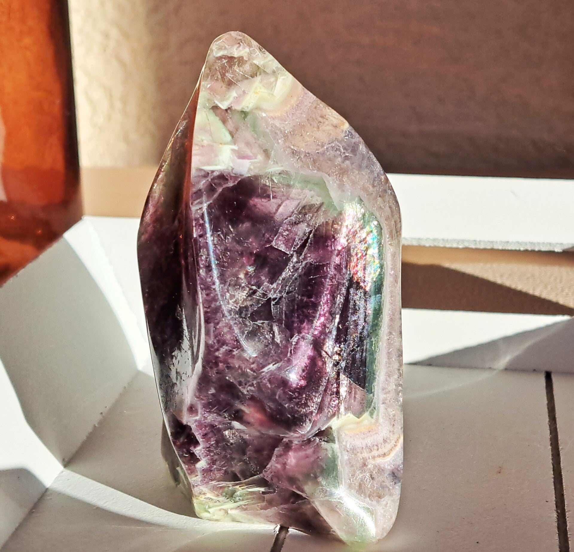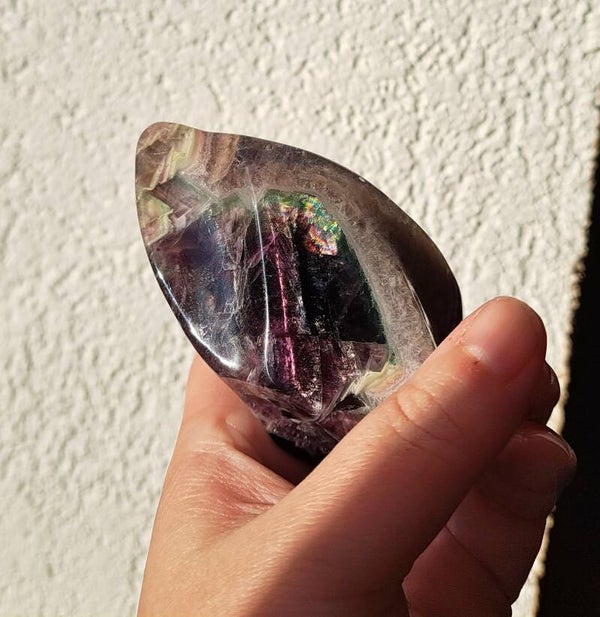 Fluoriet is een prachtige, fijne steen met een mooie energie. Als hij een regenboogje heeft is hij nog 100x mooier. Deze vlam is ook zeker voorzien van kleine regenboogjes!